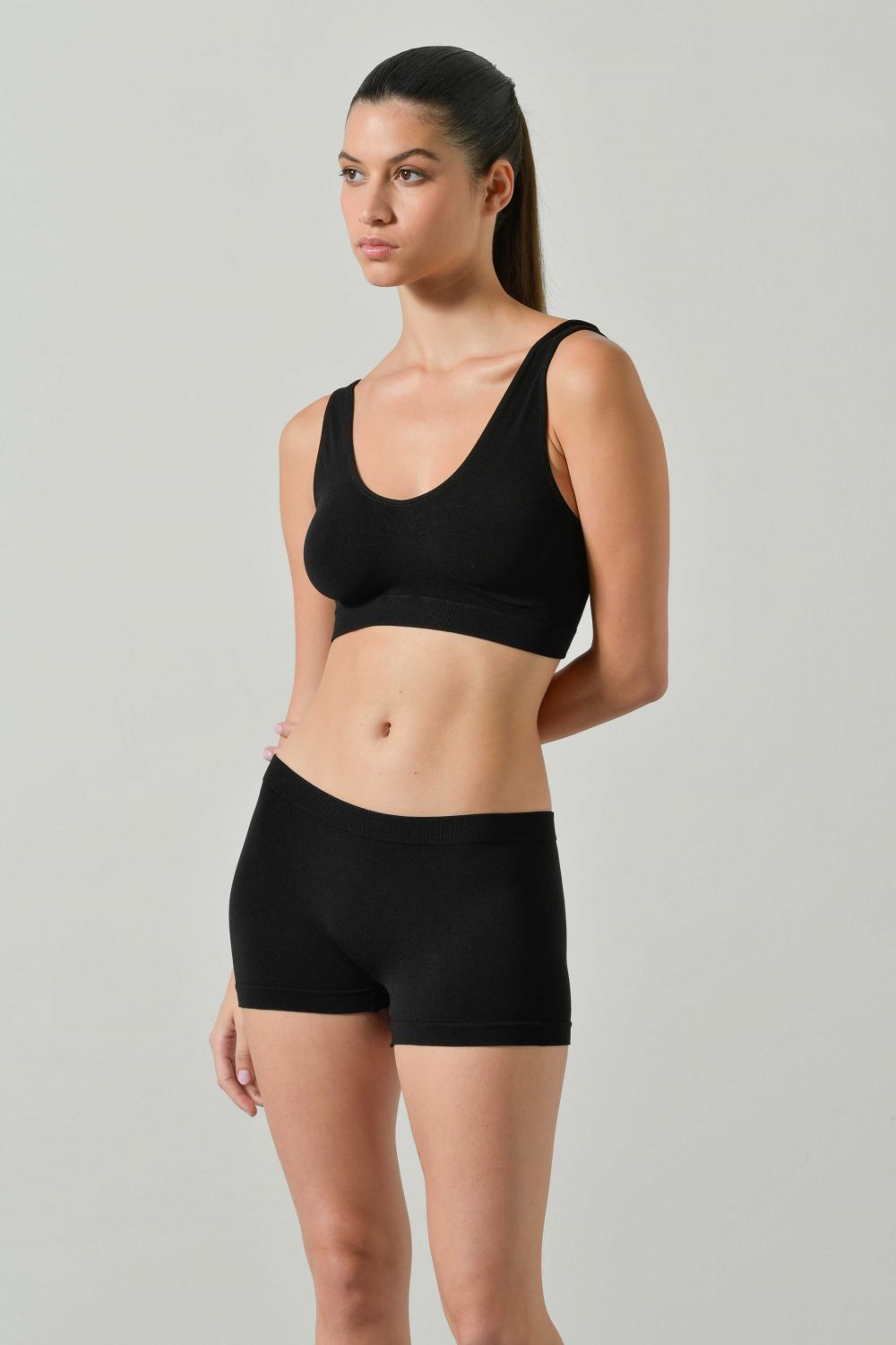 Gli Culotte Donna Bamboo sono realizzati in viscosa di bamboo, un tessuto incredibilmente morbido ed elasticizzato, ideale per pelli sensibili. Grazie al design seamless, questi shorts offrono una vestibilità comoda e senza cuciture, perfetta per l'uso quotidiano.