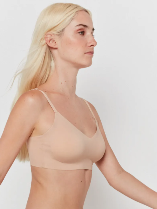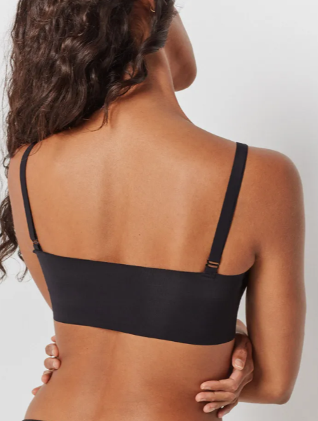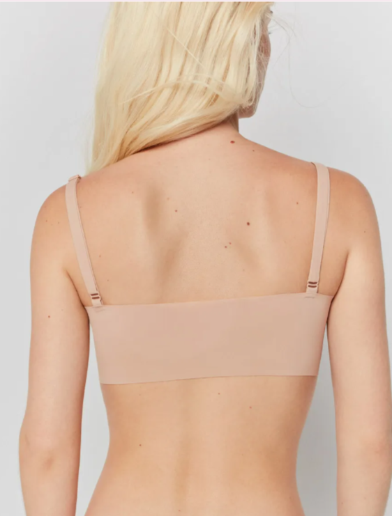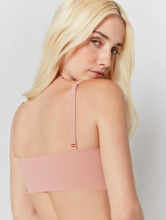 Top senza ferretto e con foam estraibile senza gancetti sul retro. Finitura a termosaldatura e senza cuciture per un maggiore comfort.